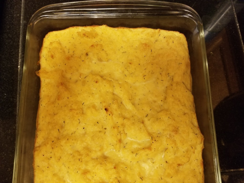 After smashing and seasoning, the rutabaga is folded over whipped egg whites to create the “puff” in Puff Casserole. Fortunately, Sous Chef Christina was on hand to ensure the stiffness of my peaks. She regaled me with tales of Austrian food and the superfluity of leavening in European baking. I was glad to have her expertise in the kitchen, otherwise I’m pretty sure my final product would have been sadly deflated. Instead, we created utter puff-fection!